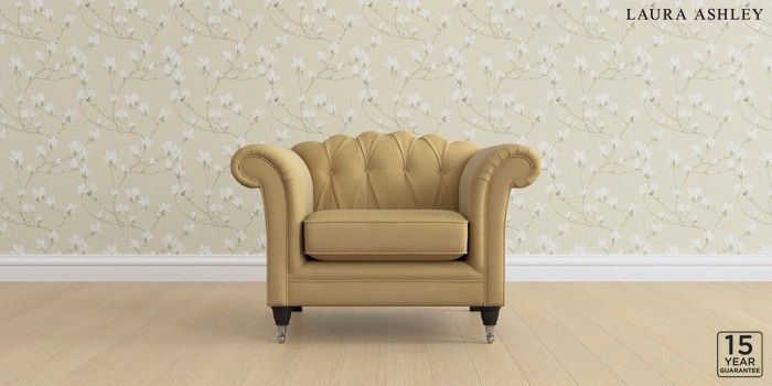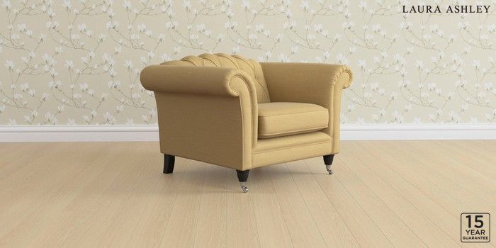 6.12.13 Buy Gloucester Button Back by Laura Ashley Armchair Kinsham Ochre Yellow Low Chrome Castor - Black from the Next UK online shop Click here to use our accessible website