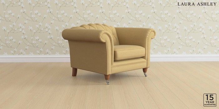 6.12.13 Buy Gloucester Button Back by Laura Ashley Armchair Kinsham Ochre Yellow Low Chrome Castor - Teak from the Next UK online shop Click here to use our accessible website