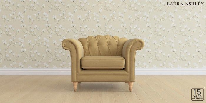 6.12.13 Buy Gloucester Button Back by Laura Ashley Armchair Kinsham Ochre Yellow Low Turned - Light Oak from the Next UK online shop Click here to use our accessible website