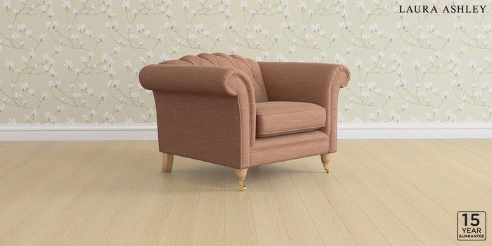 6.12.13 Buy Gloucester Button Back by Laura Ashley Armchair Kinsham Rust Orange Low Brass Castor - Light Oak from the Next UK online shop Click here to use our accessible website