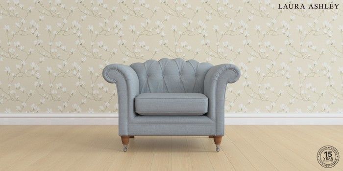 6.12.1 Buy Gloucester Button Back by Laura Ashley Armchair Kinsham Seaspray Blue Low Chrome Castor - Teak from the Next UK online shop Click here to use our accessible website