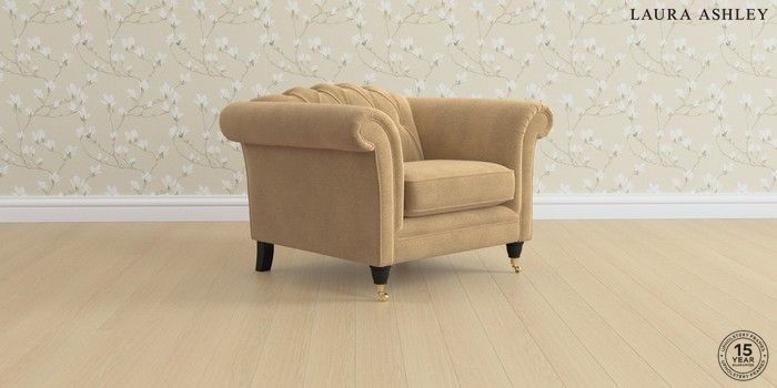 6.12.1 Buy Gloucester Button Back by Laura Ashley Armchair Lundar Chenille Caramel Natural Low Brass Castor - Black from the Next UK online shop Click here to use our accessible website