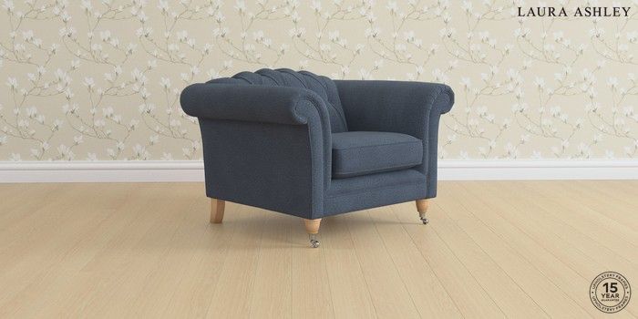 6.12.1 Buy Gloucester Button Back by Laura Ashley Armchair Lundar Chenille Navy Blue Low Chrome Castor - Light Oak from the Next UK online shop Click here to use our accessible website