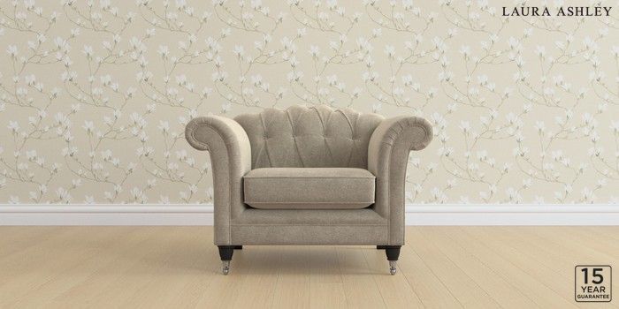 6.12.13 Buy Gloucester Button Back by Laura Ashley Armchair Lundar Chenille Truffle Natural Low Chrome Castor - Black from the Next UK online shop Click here to use our accessible website