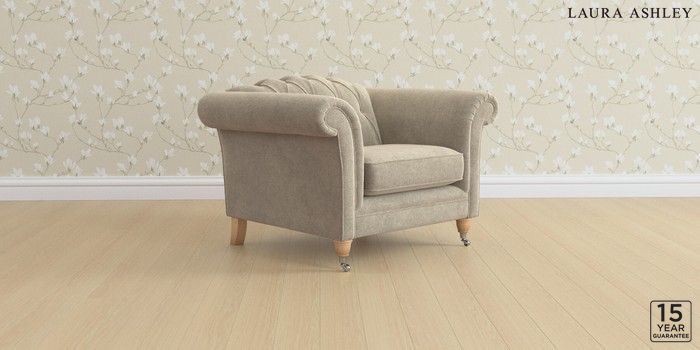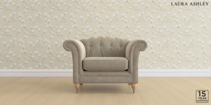 6.12.13 Buy Gloucester Button Back by Laura Ashley Armchair Lundar Chenille Truffle Natural Low Chrome Castor - Light Oak from the Next UK online shop Click here to use our accessible website
