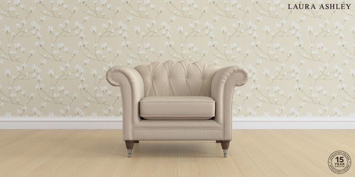 6.12.1 Buy Gloucester Button Back by Laura Ashley Armchair Melbreak Geo Light Natural Low Chrome Castor - Chestnut from the Next UK online shop Click here to use our accessible website