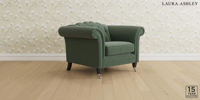6.12.13 Buy Gloucester Button Back by Laura Ashley Armchair Nantmor Fern Green Low Chrome Castor - Black from the Next UK online shop Click here to use our accessible website
