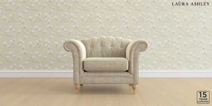 6.12.1 Buy Gloucester Button Back by Laura Ashley Armchair Nantmor Truffle Natural Low Brass Castor - Light Oak from the Next UK online shop Click here to use our accessible website