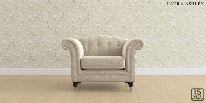 6.12.13 Buy Gloucester Button Back by Laura Ashley Armchair Nantmor Truffle Natural Low Chrome Castor - Black from the Next UK online shop Click here to use our accessible website