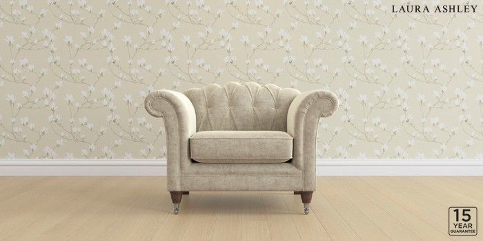 6.12.13 Buy Gloucester Button Back by Laura Ashley Armchair Nantmor Truffle Natural Low Chrome Castor - Chestnut from the Next UK online shop Click here to use our accessible website