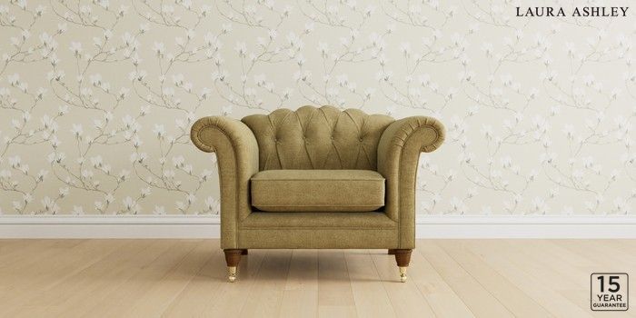 6.12.1 Buy Gloucester Button Back by Laura Ashley Armchair Orla Gold Natural Low Brass Castor - Teak from the Next UK online shop Click here to use our accessible website