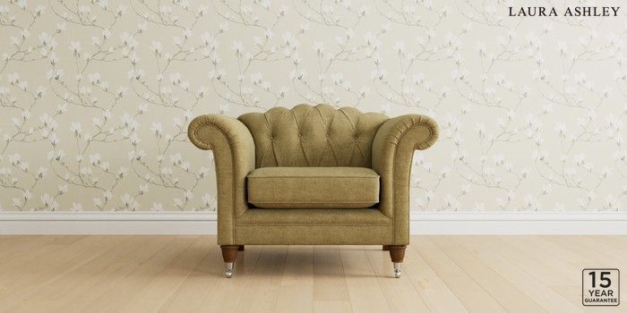 6.12.1 Buy Gloucester Button Back by Laura Ashley Armchair Orla Gold Natural Low Chrome Castor - Teak from the Next UK online shop Click here to use our accessible website