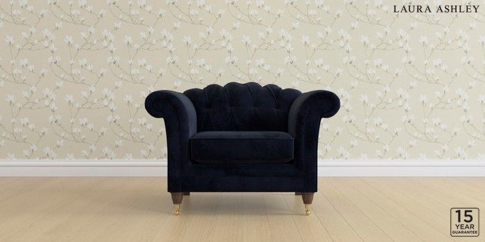 6.12.13 Buy Gloucester Button Back by Laura Ashley Armchair Orla Midnight Navy Low Brass Castor - Chestnut from the Next UK online shop Click here to use our accessible website