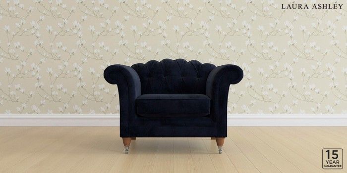 6.12.13 Buy Gloucester Button Back by Laura Ashley Armchair Orla Midnight Navy Low Chrome Castor - Teak from the Next UK online shop Click here to use our accessible website