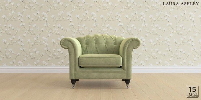 6.12.13 Buy Gloucester Button Back by Laura Ashley Armchair Orla Pale Hedgerow Green Low Chrome Castor - Black from the Next UK online shop Click here to use our accessible website