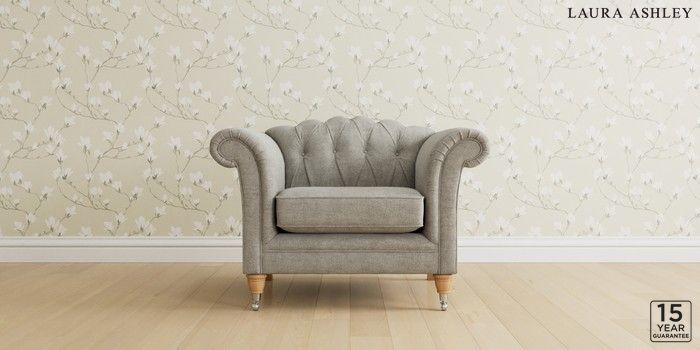 6.12.1 Buy Gloucester Button Back by Laura Ashley Armchair Orla Pale Steel Grey Low Chrome Castor - Light Oak from the Next UK online shop Click here to use our accessible website