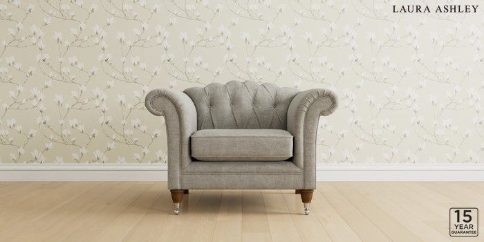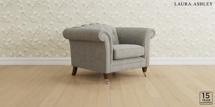 6.12.1 Buy Gloucester Button Back by Laura Ashley Armchair Orla Pale Steel Grey Low Chrome Castor - Teak from the Next UK online shop Click here to use our accessible website
