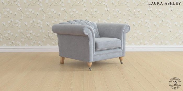 6.12.1 Buy Gloucester Button Back by Laura Ashley Armchair Peyton Powder Blue Low Chrome Castor - Light Oak from the Next UK online shop Click here to use our accessible website