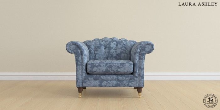 6.12.1 Buy Gloucester Button Back by Laura Ashley Armchair Tamara Dusky Seaspray Blue Low Brass Castor - Chestnut from the Next UK online shop Click here to use our accessible website
