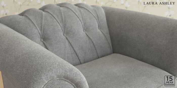 6.12.13 Buy Gloucester Button Back by Laura Ashley Armchair Wooton Dark Steel Grey Low Brass Castor - Light Oak from the Next UK online shop Click here to use our accessible website