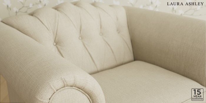 6.12.13 Buy Gloucester Button Back by Laura Ashley Armchair Wooton Natural Low Chrome Castor - Teak from the Next UK online shop Click here to use our accessible website