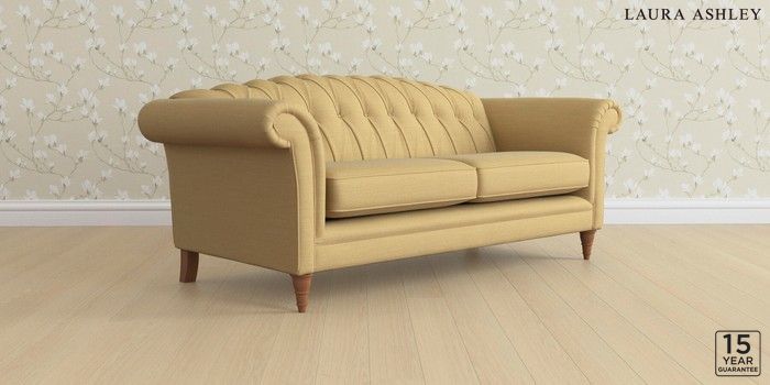6.12.13 Buy Gloucester Button Back by Laura Ashley 3 Seater Sofa Kinsham Ochre Yellow Low Turned - Teak from the Next UK online shop Click here to use our accessible website