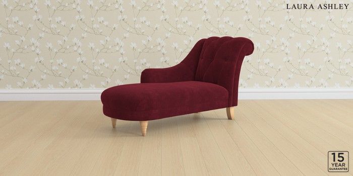 6.12.13 Buy Gloucester Button Back by Laura Ashley Chaise Longue Left Hand Alwyn Velvet Burgundy Red Low Turned - Light Oak from the Next UK online shop Click here to use our accessible website