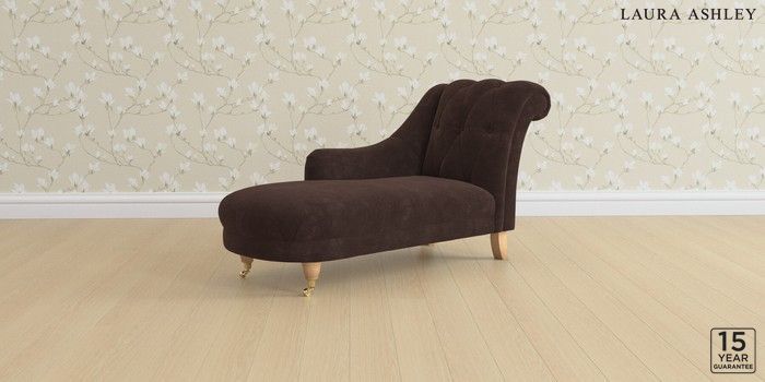 6.12.1 Buy Gloucester Button Back by Laura Ashley Chaise Longue Left Hand Alwyn Velvet Chocolate Brown Low Brass Castor - Light Oak from the Next UK online shop Click here to use our accessible website
