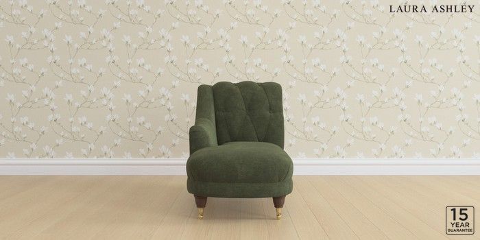6.12.1 Buy Gloucester Button Back by Laura Ashley Chaise Longue Left Hand Alwyn Velvet Ivy Green Low Brass Castor - Chestnut from the Next UK online shop Click here to use our accessible website