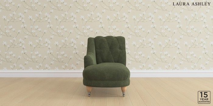 6.12.13 Buy Gloucester Button Back by Laura Ashley Chaise Longue Left Hand Alwyn Velvet Ivy Green Low Chrome Castor - Light Oak from the Next UK online shop Click here to use our accessible website