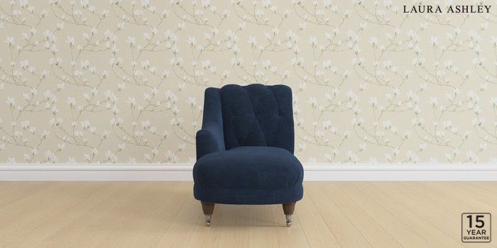 7.0.3 Buy Gloucester Button Back by Laura Ashley Chaise Longue Left Hand Alwyn Velvet Midnight Navy Low Chrome Castor - Chestnut from the Next UK online shop Click here to use our accessible website