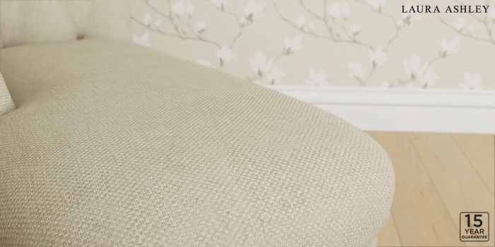 6.12.1 Buy Gloucester Button Back by Laura Ashley Chaise Longue Left Hand Anneliese Natural Low Chrome Castor - Teak from the Next UK online shop Click here to use our accessible website