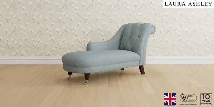 6.12.1 Buy Gloucester Button Back by Laura Ashley Chaise Longue Left Hand Anneliese Seaspray Blue Low Chrome Castor - Chestnut from the Next UK online shop Click here to use our accessible website