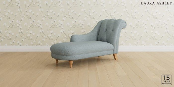 6.12.1 Buy Gloucester Button Back by Laura Ashley Chaise Longue Left Hand Anneliese Seaspray Blue Low Turned - Light Oak from the Next UK online shop Click here to use our accessible website
