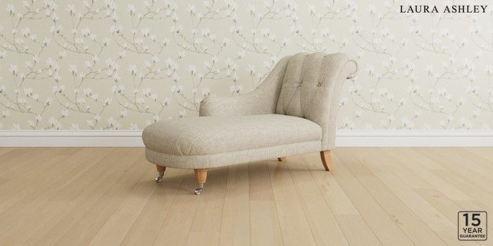 6.12.1 Buy Gloucester Button Back by Laura Ashley Chaise Longue Left Hand Bainton Natural Low Chrome Castor - Light Oak from the Next UK online shop Click here to use our accessible website