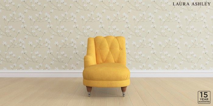 6.12.1 Buy Gloucester Button Back by Laura Ashley Chaise Longue Left Hand Bainton Ochre Yellow Low Chrome Castor - Teak from the Next UK online shop Click here to use our accessible website