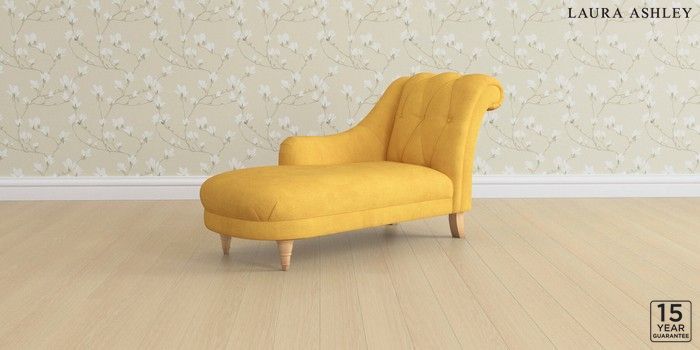6.12.1 Buy Gloucester Button Back by Laura Ashley Chaise Longue Left Hand Bainton Ochre Yellow Low Turned - Light Oak from the Next UK online shop Click here to use our accessible website