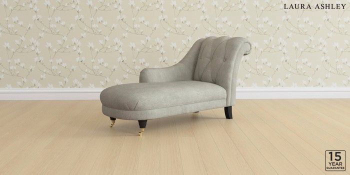 6.12.1 Buy Gloucester Button Back by Laura Ashley Chaise Longue Left Hand Bainton Pale Steel Grey Low Brass Castor - Black from the Next UK online shop Click here to use our accessible website