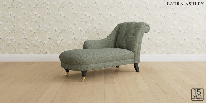 6.12.1 Buy Gloucester Button Back by Laura Ashley Chaise Longue Left Hand Bainton Sage Green Low Brass Castor - Black from the Next UK online shop Click here to use our accessible website