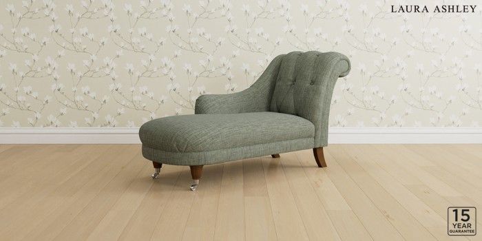 6.12.1 Buy Gloucester Button Back by Laura Ashley Chaise Longue Left Hand Bainton Sage Green Low Chrome Castor - Teak from the Next UK online shop Click here to use our accessible website