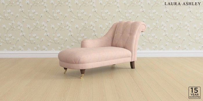 6.12.1 Buy Gloucester Button Back by Laura Ashley Chaise Longue Left Hand Edwin Chenille Blush Pink Low Brass Castor - Chestnut from the Next UK online shop Click here to use our accessible website