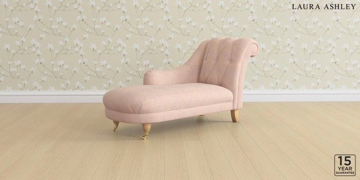 6.12.1 Buy Gloucester Button Back by Laura Ashley Chaise Longue Left Hand Edwin Chenille Blush Pink Low Brass Castor - Light Oak from the Next UK online shop Click here to use our accessible website