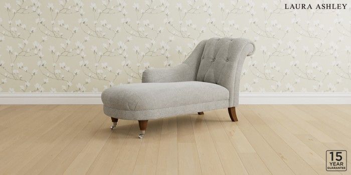 6.12.1 Buy Gloucester Button Back by Laura Ashley Chaise Longue Left Hand Edwin Chenille Silver Grey Low Chrome Castor - Teak from the Next UK online shop Click here to use our accessible website