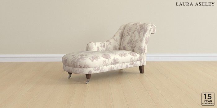 6.12.1 Buy Gloucester Button Back by Laura Ashley Chaise Longue Left Hand Gosford Weave Dusky Plum Purple Low Chrome Castor - Chestnut from the Next UK online shop Click here to use our accessible website