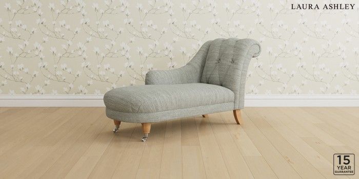 6.12.1 Buy Gloucester Button Back by Laura Ashley Chaise Longue Left Hand Harley Dove Grey Low Brass Castor - Light Oak from the Next UK online shop Click here to use our accessible website