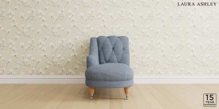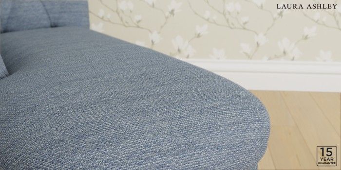 6.12.1 Buy Gloucester Button Back by Laura Ashley Chaise Longue Left Hand Harley Seaspray Blue Low Brass Castor - Light Oak from the Next UK online shop Click here to use our accessible website