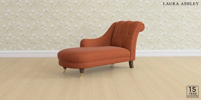 6.12.1 Buy Gloucester Button Back by Laura Ashley Chaise Longue Left Hand Harley Terracotta Orange Low Brass Castor - Chestnut from the Next UK online shop Click here to use our accessible website