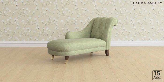 6.12.1 Buy Gloucester Button Back by Laura Ashley Chaise Longue Left Hand Kinsham Hedgerow Green Low Brass Castor - Chestnut from the Next UK online shop Click here to use our accessible website