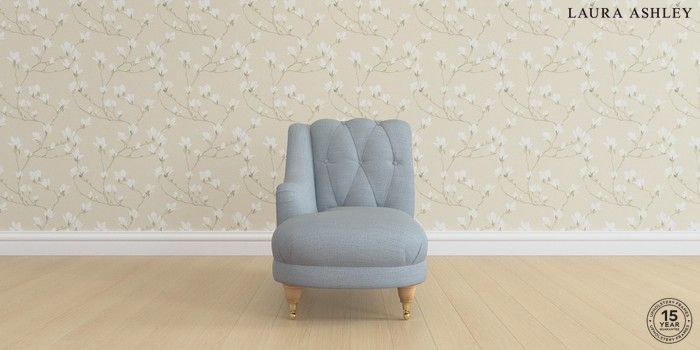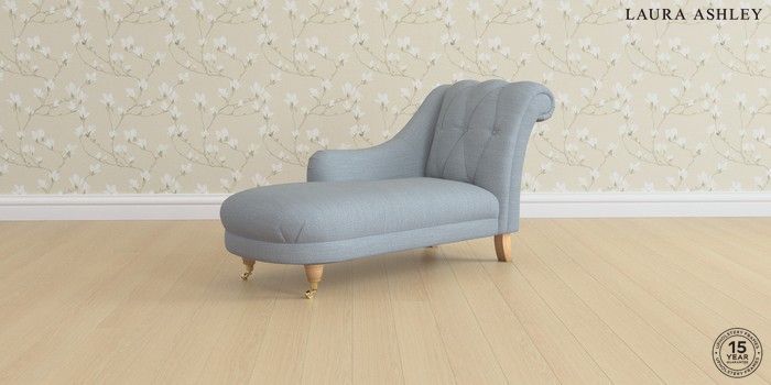 6.12.1 Buy Gloucester Button Back by Laura Ashley Chaise Longue Left Hand Kinsham Seaspray Blue Low Brass Castor - Light Oak from the Next UK online shop Click here to use our accessible website
