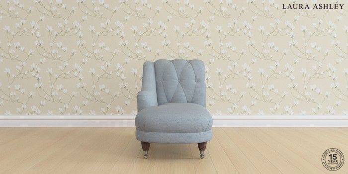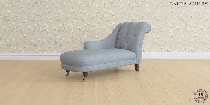6.12.1 Buy Gloucester Button Back by Laura Ashley Chaise Longue Left Hand Kinsham Seaspray Blue Low Chrome Castor - Chestnut from the Next UK online shop Click here to use our accessible website